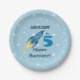 Blue Retro Rocket Ship Personalised Birthday Boy Paper Plate