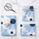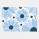 Blue retro style daisies and dark blue dots wrapping paper sheet