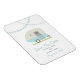 A save the date wedding magnet featuring an illustration of blue vintage trailer with a window box full of flowers. Blue and grey bunting at top. Look for matching items at Jill's Paperie.