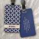 Blue Retro Vibe Flower Pattern Monogram Luggage Tag