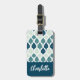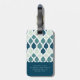 Blue Retro Vibe Leaf Pattern Monogram Luggage Tag