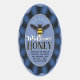Elegant blue ribbon border with a bumble bee graphic at the centre to give a premium appearance to honey products for sale at the farm market, or gifts to your friends. Use these honey jar stickers upright (vertical) for large, oval and queenline containers, upside down squeeze bottles and quart (3 lbs.) mason jars. Customise the text with the brand name of your beekeeping business, contact information, type of honey, weight, and date. ©dotpattern