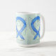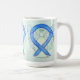 The guardian angel mug features the painting of a blue river awareness ribbon angel. Blue river awareness angel ribbon art cups or mugs can be customised with personalised messages to make great cause mugs for fundraisers, awareness cup gifts, or other special events or occasions.