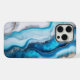 Waves of vibrant blue and aqua flow across the image, interspersed with shimmering gold accents. The colours swirl and blend, giving a sense of movement and elegance.