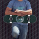 A cool science fiction skateboard design featuring a chilling blue robot mask with metallic effect. The text reads "Rise of the AI dominioN" but you can change it if you like. It's a nod in the direction of how artificial intelligence could lead to a dreadful future where machines have dominance over humans.