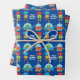 Blue Robots Cool Custom Kids Birthday Party Wrapping Paper Sheet