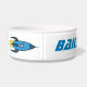 Blue Retro Rocket Ship Personalised Pet Bowl. Customise it with your pet's name, family last name or other other text. All wording can be customised or deleted. Perfect for a dog who loves to run fast. Design features a cartoon rocketship pattern with stylish customised typography font text and initial in a circle. Simple, bold, and modern addition to outer space theme home decor. Cute and fun gift idea for a dog lover, especially if interested in space ships, planets, aerospace science, astrophysics, aeronautical engineering, galaxy exploration, NASA, scifi, robots, astronauts. Explore and dream big. I love you to the moon and back.
