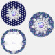 Snowflake with my drawing of a stained glass window from an old European church: a rose window, with touches of a wide variety of colours, including shades of blue, on a navy blue background. Inlay of light blue rhinestones (drawn). For an old times winter pattern. This motif is also available in cardinal red in my “cardinal red rosace” collections.