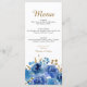Blue Rose and Gold Leaf Editable 3 Course Menu