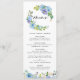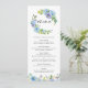 Whimsical and elegant floral menu card perfect for weddings, baby showers, bridal showers, garden party, graduations, birthdays and similar events. This floral wreath menu card features blue and purple watercolor hydrangeas, peonies and foliage.