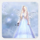This design features a beautiful blue dressed angel on a soft blue clouds and stars themed backdrop she is holding a beautiful blue rose.