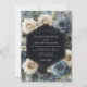 A romantic and moody floral design featuring deep blue, cream, and blush roses with subtle greenery. The painterly style evokes a sense of vintage elegance. Perfect for a sophisticated and atmospheric union.