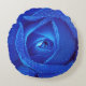 An electric blue rosebud covered in water droplets or dew drops. A very pretty design.