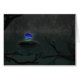 A dark, still pond surrounded by leafless trees. On a rock in the middle of the water, a single, glowing, blue rose.