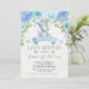 Gorgeous baby shower Invitation featuring gorgeous blue flowers and watercolor illustration of an adorable baby elephant
