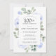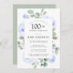 Blue Rose Floral Eucalyptus 100th Birthday Party Invitation