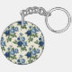 Blue Rose Floral Pattern Key Ring