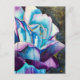 Watercolor painting design by artist Sacha Grossel of blue and purple rose with dripping paint technique. Gothic and expressionist.