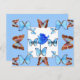 Blue Rose with blue and multicolor butterflies on a postcard. Butterflies are just Beautiful. These butterflies and blue rose would luv 2 travel any where at anytime, so send these butterflies 2 brighten someones day. God Bless You!