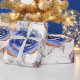 Wrap your presents in style with this elegant floral pattern. It features beautiful, artistic watercolor roses in deep blue hues, accented with vibrant orange tips. The bold black outlines give it a modern, illustrative feel, set against a subtle, light ornamental scroll background. This sophisticated and vibrant design is perfect for birthdays, anniversaries, weddings, or any special occasion that calls for a touch of artistic flair.