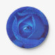 An electric blue rosebud covered in water droplets or dew drops. A very pretty design.