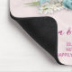A wedding commemorative personalised mousepad designed with a photo of some blue roses surrounded by sprigs and leaves and fancy baubles. The baubles also form a crown shape. White flowers and pretty blue bows and white lacy ribbon also surround the roses. Set on a dusty pink marble background.