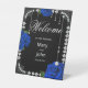 Blue Roses And Diamonds Wedding Pedestal Sign