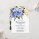 Elegant blue roses Quinceañera birthday party invitation with gold glitter, bokeh, and string lights.