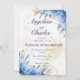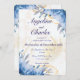 This elegant wedding invitation features soft blue watercolour roses, shimmering gold marble accents, and refined typography on a champagne-white background. Perfect for winter or formal weddings, it captures timeless sophistication with a touch of artistic flair.