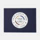 Simple custom company logo with slogan and website address on colour editable blue background, no minimum order quantity and no setup fee. Great business branded doormat.