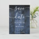 This elegant blue rustic barn wood boho wedding save-the-date card can be personalised with your information in chic typography. Designed by Thisisnotme©