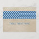 Elegant and sophisticated Rustic Quatrefoil Table Number Postcard featuring a vintage textured look background and a modern pattern border in royal blue. Easy to customise, simply add the appropriate table number(s) in the text field provided. Click "Customise It" to find more personalisation options.