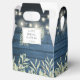A stylish bridal shower favour box featuring delicate watercolor leaves and pretty string lights on a blue rustic wood background. You can personalise with your own thank you message on the reverse. A perfect way to say thank you to your guests! Designed by Thisisnotme©