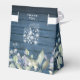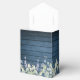 A rustic wedding favour box featuring delicate sage and lilac watercolor leaves, string lights and mason jars on a blue wood panels background. You can personalise with your own thank you message on the reverse. A perfect way to say thank you to your guests! Designed by Thisisnotme©