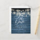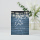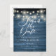 Blue Rustic String Lights QR Code Save the Date Postcard