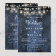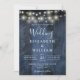 Blue Rustic Wood All In One String Lights Wedding Invitation