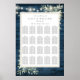 This elegant greenery eucalyptus leaves seating chart features pretty string lights and delicate watercolor leaves with your guests' seating plan framed by a gold border on a blue rustic wood background. Designed by Thisisnotme©