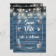 Blue Rustic Wood Mason Jar String Lights Floral Save The Date