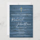 A rustic first holy communion invitation featuring an elegant gold cross and script signature name on a blue wood panels background. Personalise with your special event information in chic typography. Designed by Thisisnotme©
