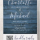 Blue Rustic Wood String Lights QR Code Wedding All In One Invitation