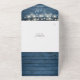 Blue Rustic Wood String Lights QR Code Wedding All In One Invitation