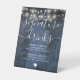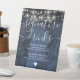 Blue Rustic Wood String Lights Signature Drinks Pedestal Sign