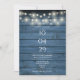 Blue Rustic Wood String Lights Wedding Date Invitation