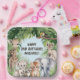 Step into a whimsical world of adventure with PixeliaDesigns' Safari Jungle Animals Themed Baby Boy 2nd Birthday Paper Plate, a delightful addition to any little boy's birthday celebration. Each plate features an enchanting design of watercolor-rendered baby animals, including a giraffe, tiger, elephant, zebra, and more, playfully nestled among lush tropical leaves. These charming plates are not just functional; they're personalized with the name of your special boy, adding an extra touch of uniqueness to his big day. Perfect for serving birthday treats, these plates blend practicality with the magic of a jungle safari, making every moment of the celebration memorable and fun.