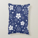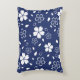 Traditional Japanese Sakura white cherry blossom flowers on navy blue.