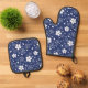Blue Sakura Pattern Oven Mitt & Pot Holder Set