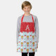This adorable apron features a blue background with Santa, milk, and cookies and a red and white polka dot accent. Personalise with an initial.