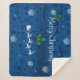 Blue Santa's Sleigh and Reindeer Sherpa Blanket