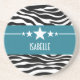 Trendy and modern Sassy Star Zebra Sandstone Coaster featuring a chic black and white zebra print background and a bold royal blue border adorned with a fun star motif. This girly design may be customised with the personalised text of your choosing. Click "Customise It" to find more personalisation options.