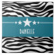 Trendy and modern Sassy Star Zebra Tile featuring a chic black and white zebra print background and a bold royal blue border adorned with a fun star motif. This girly design may be customised with the personalised text of your choosing. Click "Customise It" to find more personalisation options.